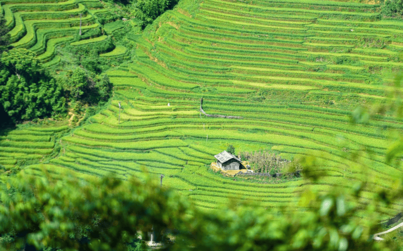 沙壩 – 2Km (0.1hr)  - 番西邦峰【芒花登山列車+ 番西邦纜車】- 20Km (1hr) - 絕美梯田Lào Chải (老才村) – 9Km (0.3hr) -T Van (踏梅黑苗部落)